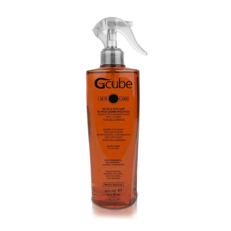 Acqua solare super abbronzante con complesso attivatore dell’abbronzatura. Idrata, rinfresca e accelera il colorito dorato in modo uniforme.